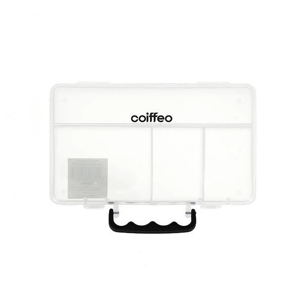 Boîte de rangement tansparente petit format à 4 compartiments.