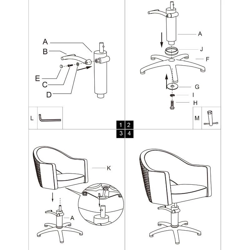 Pour le montage du fauteuil, suivez les étapes suivantes ou regardez le schéma sur la photo du produit :