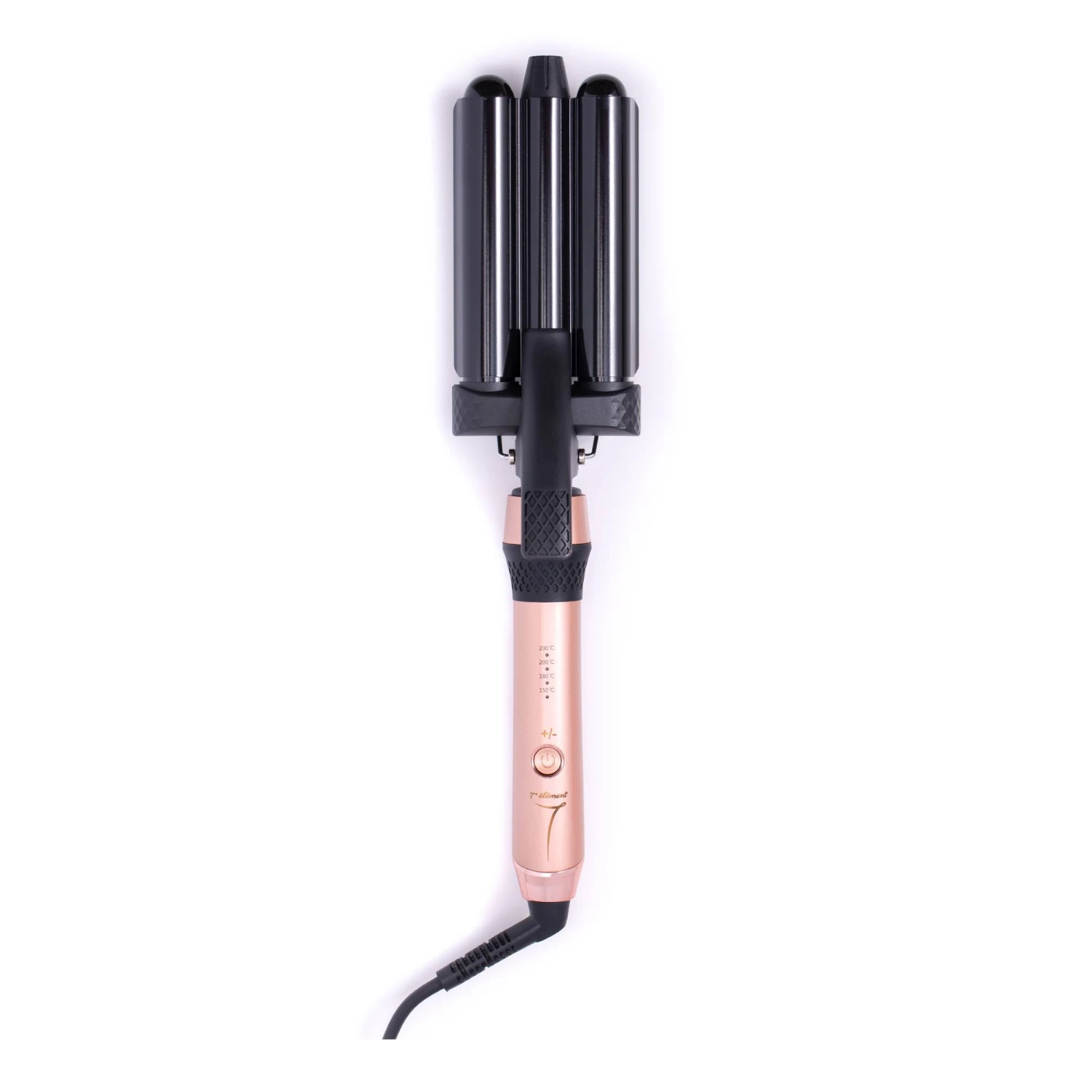 Le fer à onduler 3 branches – Beach Waver Diamond Rose Gold de 7ème Elément est conçu pour créer facilement un effet wavy retour de plage à vos cheveux.