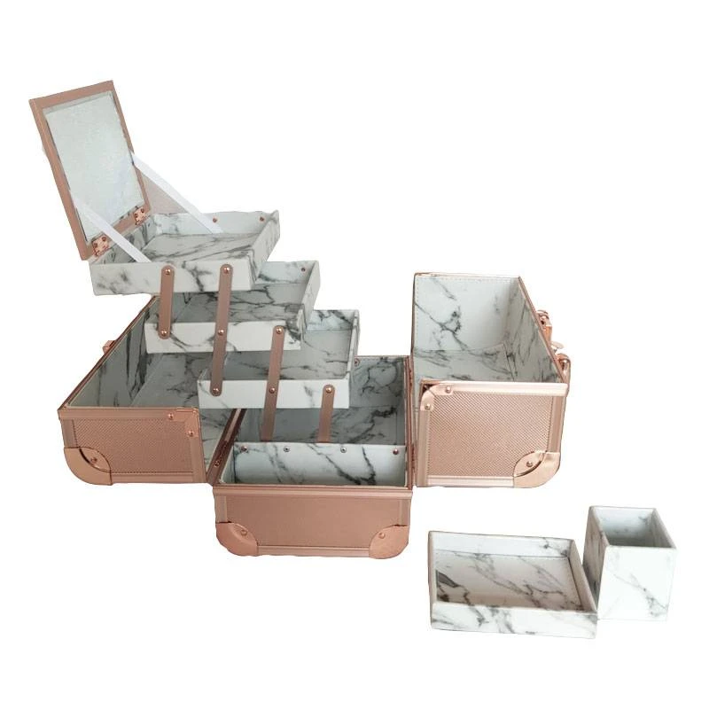 - 3 plateaux télescopiques fermés par un couvercle équipé d’un miroir