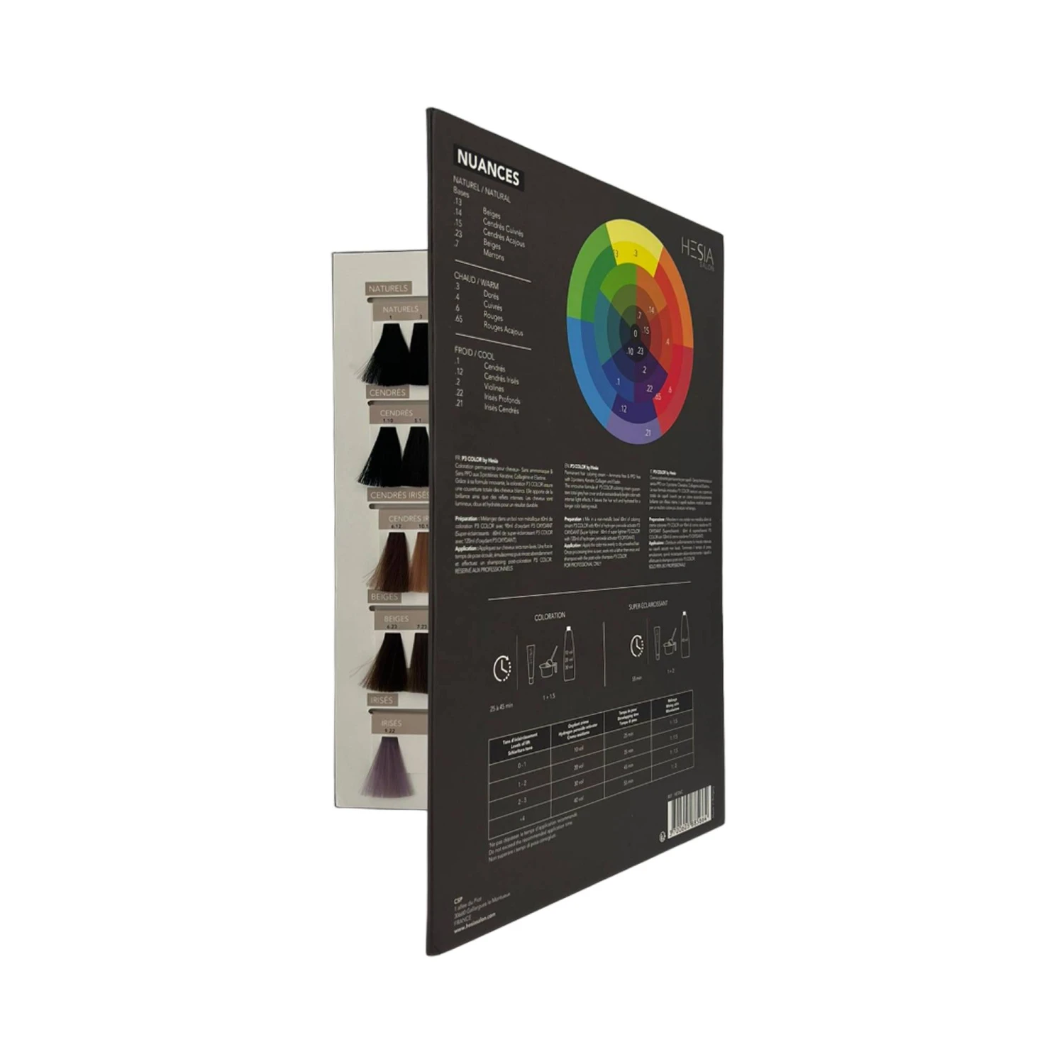 Il permet également de rappeler les notions de ratio de mélange, temps de pause et les oxydants avec lesquels les utiliser destinés aux coiffeurs.