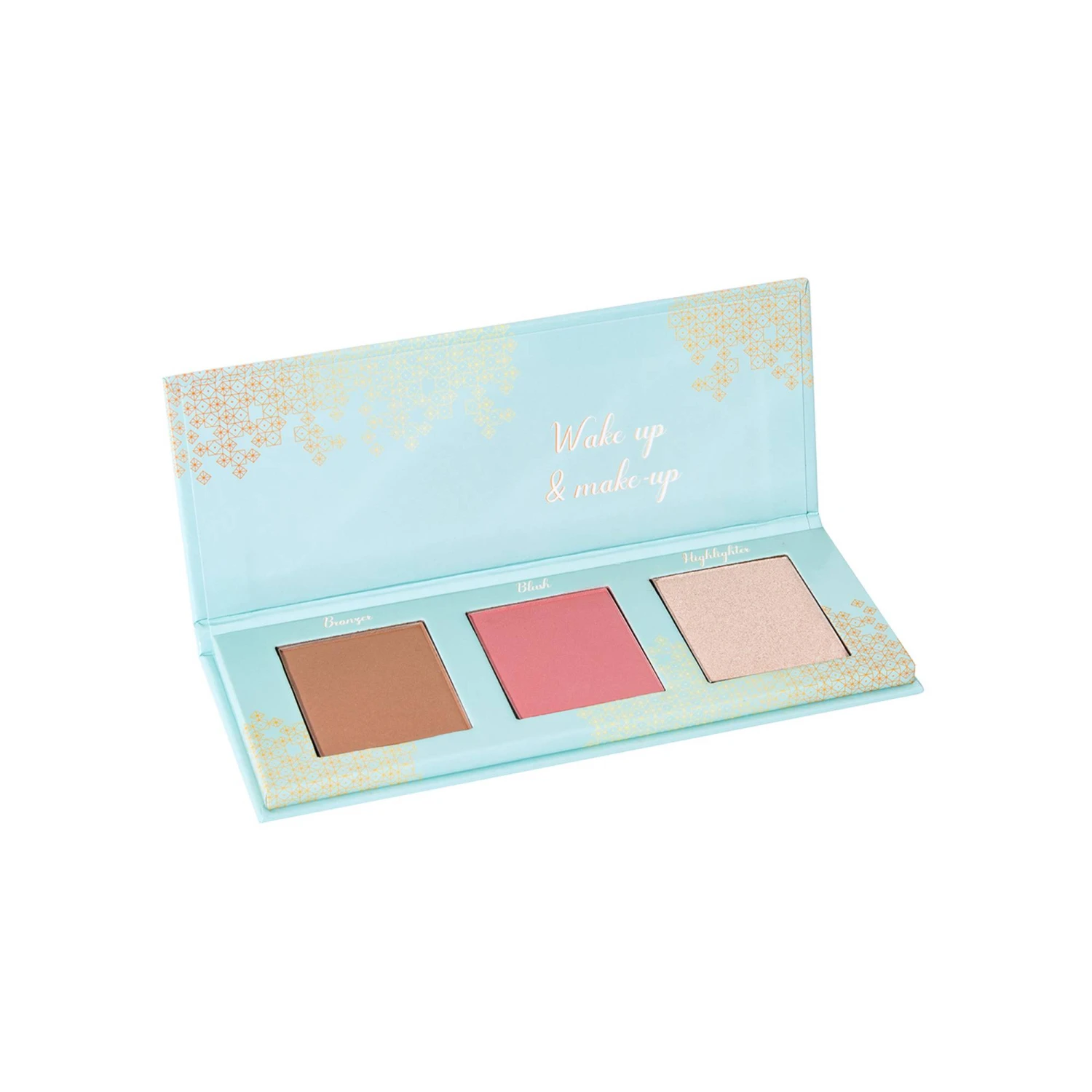 La palette Peggy Sage est composée d’un blush, d’un bronzer et d’un enlumineur.