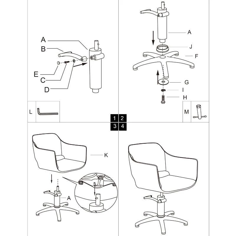 Insérer la pompe dans la base du fauteuil et ajouter les embouts en caoutchouc sur chaque pied.